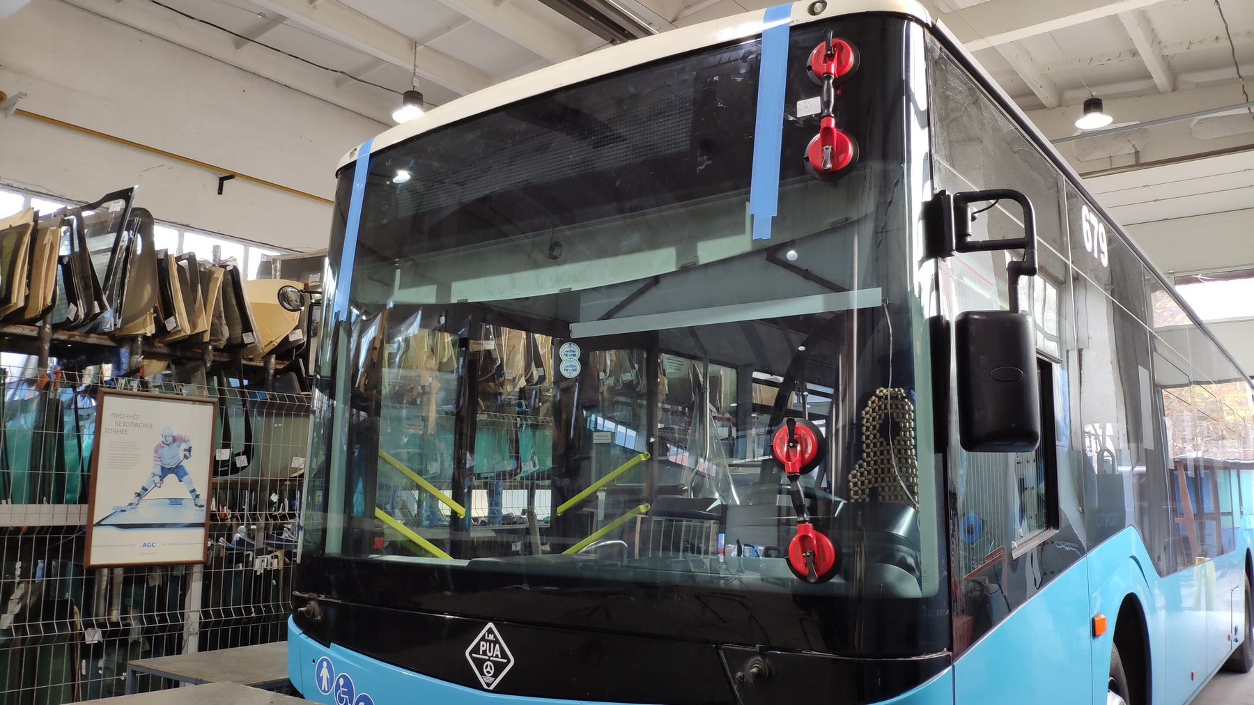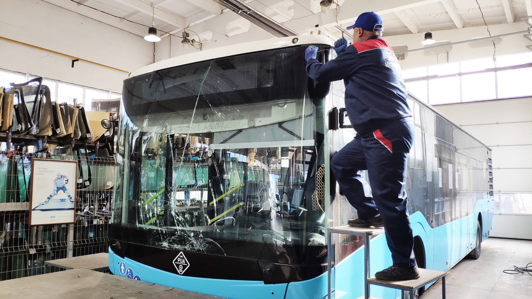 Montarea parbrizului la autobuz